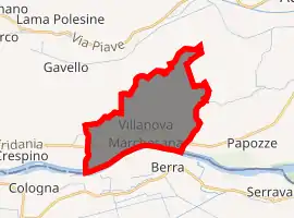 Villanova Marchesana is a comune (municipality) in the Province of Rovigo in the Italian region Veneto, located about 60 kilometres (37 mi) southwest of Venice and about 15 kilometres (9 mi) southeast of Rovigo. As of 31 December 2004, it had a population of 1,109 and an area of 18.2 square kilometres (7.0 sq mi).[3]