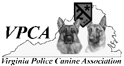 The Virginia Police Canine Association (VPCA)[1] is a professional law enforcement association that trains and supports police canines and handlers for member law enforcement agencies. Police canine teams can be certified in narcotics detection, explosives detection, cadaver detection, search and rescue, wildlife detection, and Patrol/Utility. Patrol/Utility canine teams are certified in criminal apprehension, tracking, article recovery, building and area searches, and crowd control. Member agencies consist of Police Departments and Sheriff's Offices all across northern and central Virginia.