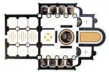 Construction began during the reign of Serbian King Stefan Dečanski in 1327 and the original founding charter from 1330 has been preserved.[5] Dečanski's son, Stefan Dušan, seized the Serbian throne in 1331 and had his father strangled to death in the Zvečan Fortress shortly afterwards. Dečanski was buried in the still incomplete Visoki Dečani monastery in 1331 and its construction was continued by Dušan.[6] The monastery's main architect was the Franciscan friar Vito of Kotor.[6][4] According to Branislav Pantelić, the monastery represents the last phase of the Western, Gothic,[7] Byzantine-Romanuesque architecture and contains Byzantine paintings and numerous Romanseque sculptures, part of a "Palaeologan renaissance".[8]
