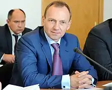 Vladyslav Atroshenko (Ukrainian: Владислав Анатолійович Атрошенко; b. 5 December 1968, Chernihiv) is a Ukrainian politician and mayor of Chernihiv. In the 2015 Ukrainian local elections he was elected for the Petro Poroshenko Bloc "Solidarity".[1] In the 2020 Ukrainian local elections he was elected for Native Home[2]