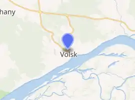 Volsk (Russian: Вольск) is a town in Saratov Oblast, Russia, located on the right bank of the Volga River, opposite the mouth of the Bolshoy Irgiz (a tributary of the Volga), 147 kilometers (91 mi) northeast from Saratov, the administrative center of the oblast. As of the 2010 Census, its population was 66,508.[3]
