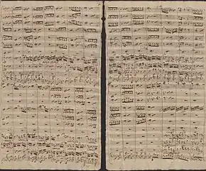 ![]() The first page of the bassoon part in Bach's hand from the archives of the Thomaskirche, one of few surviving instrumental parts written by himself | |