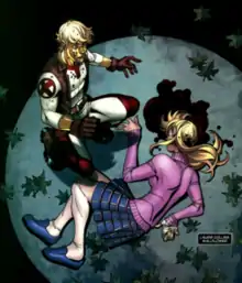 After the mansion is destroyed and rebuilt, she is placed on the official New Mutants squad with Josh, Sofia, David, Surge and Kevin and given the codename Wallflower.[7] When Rahne breaks up with Josh, saying that a relationship with him is inappropriate since she is on the faculty, he begins dating Laurie in order to make Rahne jealous.[8]