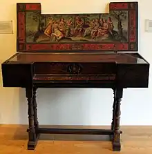 - A payment to him made in June 1542 by Edward Seymour for a pair of virginals. However, this was not unusual as a similar payment is recorded as having been made to the courtier Hugh Denys (c.1440-1511), who is not supposed to have been a musician. Money is recorded having been paid in August 1502 by Elizabeth of York, Queen of Henry VII, to Hugh Denys, reimbursing him for paying a deliveryman, or possibly their maker come in person, for a pair of clavichords, a form of virginal, thought to be amongst the earliest imported into England.[17] The transaction is recorded in the Privy Purse expenses of Elizabeth of York, August 1502: "Item, the same day, Hugh Denys, for money by him delivered to a stranger (i.e. foreigner) that gave the Queen a payre of clavycordes. In crowns for his reward, iiii libres" (£4). The reward was four times greater than the estimated value of the gift, perhaps signifying the royal mark of approval and appreciation of the maker's generosity.[18] As Alison Weir wrote of King Henry VIII "It was common for subjects to bring gifts to royalty in the expectation of a reward and such largesse or tipping was expected of a monarch".[19]
