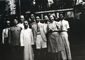 In 1939, in response to Mao's directive to place even greater weight on foreign propaganda, the Party formed a Foreign Affairs Small Group, whose members included Wang Bingnan, Chen Jiakang, Qiao Guanhua,and Gong Peng, a group that stayed together and formed the nucleus of the Foreign Ministry a decade later. The Party leadership expected them to follow world developments and to cultivate good relations with foreign journalists, diplomats, and soldiers.[7] During the war with Japan, the group served with Zhou in Chongqing, and when wartime cooperation with the Nationalist government turned to Civil War after 1945, Wang was deputy under Ye Jianying in the Foreign Affairs Group of the Central Committee. Wang and Anna visited India briefly in 1945, but returned to work with the Marshall Mission from the end of 1945 to 1947, where he met American diplomats.[8]