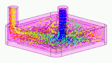 Water is inexpensive, non-toxic, and available over most of the earth's surface. Liquid cooling offers higher thermal conductivity than air cooling. Water has unusually high specific heat capacity among commonly available liquids at room temperature and atmospheric pressure allowing efficient heat transfer over distance with low rates of mass transfer. Cooling water may be recycled through a recirculating system or used in a single pass once-through cooling (OTC) system. Water's high enthalpy of vaporization allows the option of efficient evaporative cooling to remove waste heat in cooling towers or cooling ponds.[1] Recirculating systems may be open if they rely upon evaporative cooling or closed if heat removal is accomplished in heat exchangers with negligible evaporative loss. A heat exchanger or condenser may separate non-contact cooling water from a fluid being cooled,[2] or contact cooling water may directly impinge on items like saw blades where phase difference allows easy separation. Environmental regulations emphasize the reduced concentrations of waste products in non-contact cooling water.[3]