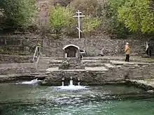 A white wayside cross was also erected at Gremuchiy spring. In the 1990s, the spring was consecrated.