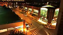 Commercial activities, however, take place mostly across the river in Lafayette. The largest commercial area in West Lafayette is the 90-acre (360,000 m2) Wabash Landing/Levee area, which has become a thriving urban-type district since the entire area was reconstructed and the Pedestrian Bridge to Lafayette replaced the old State Street bridge. The Levee features Wabash Landing, a complex containing shops, restaurants, coffee houses, a 9-screen movie theater, a Hilton Garden Inn, and the Riverside Skating Center.