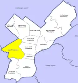 ![]() A map showing West Philadelphia in relation to the rest of the city. | |
