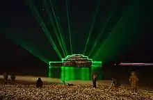 In 2010, the West Pier was illuminated with 3D mapping lasers as part of a series of artworks by Josef O'Connor to celebrate the Chinese New Year of the Tiger.[35][36] The pier was illuminated by computer-controlled laser drawings to make it appear and disappear on the horizon, giving the appearance of reconnecting it to the shore.[37]