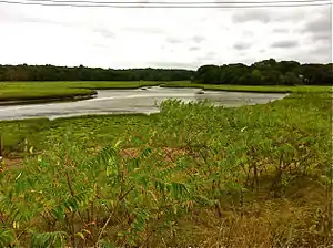 The Weymouth Back River, sometimes called Back River, is a short, primarily tidal river in Hingham and Weymouth, Massachusetts, about 10 miles (16 km) south of Boston. It arises from a number of tributaries in ponds and swamps, most notably Whitmans Pond, flows northward, and empties into Hingham Bay (just south of Grape Island and Slate Island).[1]