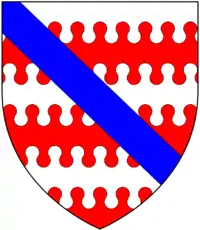 According to Meredith, the Amory family (or d'Amory, Emery, Amery, etc.) had been resident within the parish of Bishop's Nympton from as early as 1524.[26] The family acquired Whitechapel following its sale by Sir Robert Bassett, and held it until about 1660.[27] It was during this time held together with the estates of Reeds, Hammetts, West Berwill (or Berryfield), all in the parish of Bishops Nympton, and with other estates in Mariansleigh, King's Nympton and Rose Ash.[27] There was another family of this name in Gloucestershire,[28] which bore the same armorials as recorded in the respective heraldic visitations to Gloucestershire[29] in 1592 and to Devon[30] in 1620. The arms for both were: Barry nebulé of six argent and gules, over all a bend azure.