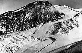 The Whitney Glacier is a glacier situated on Mount Shasta, in the U.S. state of California.[2][3] The Whitney Glacier is the longest glacier and the only valley glacier in California. In area and volume, it ranks second in the state behind the nearby Hotlum Glacier. In 1986, the glacier was measured to be 126 ft (38 m) deep and over three km in length.[4] The glacier starts on Mount Shasta's Misery Hill at 13,700 ft (4,200 m) and flows northwestward down to the saddle between Mount Shasta and Shastina,[5] where uneven ground causes a major icefall at 11,800 ft (3,600 m).[5] It then flows down the valley between the two peaks, reaching its terminus at 9,500 to 9,800 ft (2,900 to 3,000 m).[5][6]