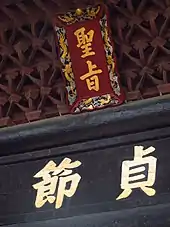 During the Ming dynasty, widow chastity became increasingly common, gained wide prominence and was given legal support.[5] Marriage and property laws that discouraged remarriage started during the Yuan dynasty also made widow chastity increasingly popular.[5] Chaste widows were elevated to the role of cultural heroes,[8] and the state awarded 'testimonials of merit' (旌表, jingbiao) to chaste women. Such awards had been given to chaste widows (節婦) since the early 14th century, and extended to women who died resisting rape (烈女) in the late 16th century.[10] The state gave approval to local chastity cults whereby commemorative arches (貞節坊) and shrines were constructed to honor the women by members of their families or communities, and honored them with commemorative writings.[11][12] Chastity also became associated with suicide, and suicide by widows increased dramatically during the Ming era.[13][11]