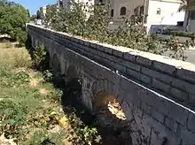 Between 2004 and 2005, the aqueduct's surviving arches were restored and a lighting system was installed, at a total cost of Lm 140,000.[18][19] Some of the arches are in need of restoration once again, mainly because of pollution since a major road now runs alongside the aqueduct.[20] A section of the aqueduct was extensively damaged in December 2013 due to a car crash, but the damage has since been repaired.[21]