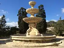 The "Pinto fountain" was inaugurated on 18 January 1746 by Grand Master Pinto.[50] When the square became a parade ground for the British military,[48] the fountain was first relocated close by to the Palace of Justice (later destroyed and replaced)[47] and then to St. Philip's Gardens in Floriana, where it remains today.[51] Architect Said says that the fountain was moved away by the knights, prior British rule, as evidenced with some paintings.[52]