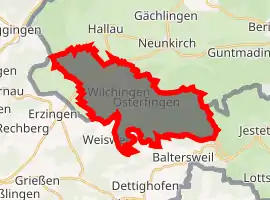 Wilchingen has an area, as of 2006, of 21.2 km2 (8.2 sq mi). Of this area, 50.6% is used for agricultural purposes, while 42.1% is forested. Of the rest of the land, 6.9% is settled (buildings or roads) and the remainder (0.4%) is non-productive (rivers or lakes).[3] In 2005 the village of Osterfingen merged into Wilchingen.[4]