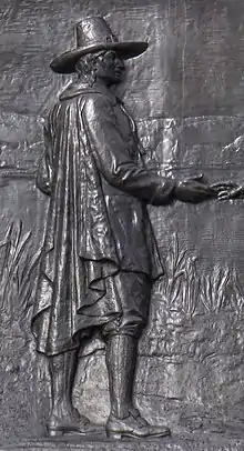 ![]() Conjectural representation of Blaxton on the The Founders Memorial (1930) in Boston. | |