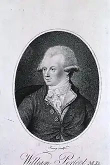 He was born in Oxford, England,[1] the son of William Perfect (1712–1757), a clergyman of Huguenot extraction who was vicar of East Malling, Kent, from 1745.[2] In 1749, Perfect apprenticed under William Everred, a London surgeon,[3] for seven years and attended lectures by Colin MacKenzie, a Scottish obstetrician.[4] He opened his medical and obstetric practice in High Street, West Malling, Kent in 1756,[5] and he obtained his Medicinae Doctor (M.D.) from St Andrews University in 1783.[6] He published three editions of his book, Cases in Midwifery, 1781-1787, and each edition contained case reports describing in detail the conditions of the patients and the treatments which were administered. He is a distant relative of the Stratford and Taylor families.