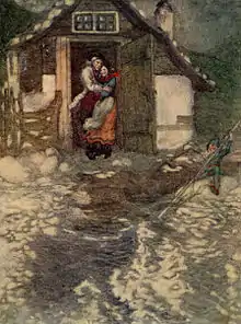 William Andrew Pogany (born Vilmos András Pogány; August 24, 1882 – July 30, 1955) was a prolific Hungarian illustrator of children's and other books. His contemporaries include C. Coles Phillips, Joseph Clement Coll, Edmund Dulac, Harvey Dunn, Walter Everett, Harry Rountree, Sarah Stilwell Weber, and N.C. Wyeth.[2] He is best known for his pen and ink drawings of myths and fables.[3] A large portion of Pogany's work is described as Art Nouveau.[3] Pogany's artistic style is heavily fairy-tale orientated and often feature motifs of mythical animals such as nymphs and pixies.[3] He paid great attention to botanical details.[3] He used dreamy and warm pastel scenes with watercolors, oil paintings, and especially pen and ink.[3] Painstakingly detailed and confident, Pogany's pen and ink pieces portray the true extent of his talent.[3]