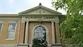 Front of library with 1904 cornerstone