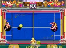 When playing against the computer the player plays one match against each character (with the next characters difficulty increasing each time) until all are defeated, thus winning the game, and when playing 2 player versus one match is played between the two players. A match consists of 3 sets that last 30 seconds by default and up to 99 seconds on the arcade version. (with the timer not stopping when a point is scored unlike most sports). A set is won by the player who has the most points at the end of 30 seconds, or if a player reaches 12 points. A tie gives a win to both players. A match is won when the player wins two sets, if players tie in both of the first two sets (giving each of them two wins) the game enters a sudden death round where the first player to score (regardless of the zone value) wins.