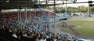 The new park opened on March 16, 1955 with an exhibition game between the Washington Senators (now the Minnesota Twins) and the Cincinnati Redlegs. According to H. B. Richardson, Jacksonville Braves general manager at the time, "When the new park opened, it was the best park in the (Double-A) South Atlantic League and probably better than most (Triple-A) Southern League parks at the time. It was a showcase."[3] Phil Niekro stated, "When I played there, Wolfson Park was one of the finest in the country. It made me feel like I was already in the big leagues."[3] Although used primarily for baseball, the facility hosted other events until the Jacksonville Coliseum was built in 1961. A show in July 1955 featured a young Elvis Presley who hid out in a bathroom, then the ticket office, to avoid being mobbed by female fans.[3]