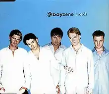 "Words" became the first single from Irish boyband Boyzone's album A Different Beat. The single was their seventh single overall, becoming their first number one hit in the UK. It received a Gold certification.[26]