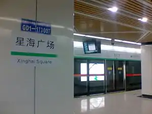 Xinghai Square Station (Chinese: 星海广场站) is a station of Line 1, Suzhou Rail Transit. The station is located in Suzhou Industrial Park of Suzhou. It has been in use since April 28, 2012, the same time of the preoperation of Line 1.[1]