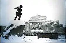 During the period 1914–1916 he was in internal exile in Turukhansk, Siberia, along with Joseph Stalin (then known as Dzhugashvili). Both had been betrayed by the Okhrana agent Roman Malinovsky. Of Stalin, Sverdlov wrote "The comrade I was with turned out to be such a person, socially, that we didn't talk or see each other. It was terrible."[5] Like Stalin, he was co-opted in absentia to the 1912 Prague Conference.[6] In 1914, Sverdlov moved to a different village, moving in with his friend Filipp Goloshchyokin, known as Georges. In early 1917, Sverdlov received news of the Putilov strike of 1917 in Petrograd. Alongside Filipp, he set out for Petrograd at once, arriving to Petrograd on 29 March 1917