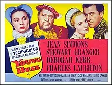 Young Bess is a 1953 Technicolor biographical film made by Metro-Goldwyn-Mayer about the early life of Elizabeth I, from her turbulent childhood to the eve of her accession to the throne of England. It stars Jean Simmons and Stewart Granger as Thomas Seymour, with Charles Laughton as Elizabeth's father, Henry VIII, a part he had played twenty years before in The Private Life of Henry VIII. The film was directed by George Sidney and produced by Sidney Franklin, from a screenplay by Jan Lustig and Arthur Wimperis based on the novel by Margaret Irwin (1944).