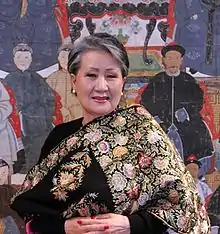 Young Yang Chung is a textile historian and embroiderer.[1] She earned a Ph.D. at New York University in 1976, with a doctoral dissertation on the origins of embroidery and its historical development of China, Japan, and Korea, and has lectured worldwide on the topic of East Asian embroidery. Through lectures, demonstrations, writings, teaching, workshops, and exhibitions of her work, she has endeavored to foster appreciation of an art form often stigmatized as "women's work" and to challenge the notion of textiles as "minor arts".