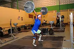 After the National Federation gave her[76] one of the two entries given to the National Olympic Committee by the International Weightlifting Federation to participate in the Olympic Games,[77] Contreras was set to practice under the guidance of Belarusian Leonte Goncharenko.[78] Even though she was lifting 100 kg in snatch and 120 kg in clean and jerk[79] and one of her country's biggest hope for an Olympic medal,[80][81] she failed her three attempts for 94 kg in snatch[82] falling out of the competition.[83]
