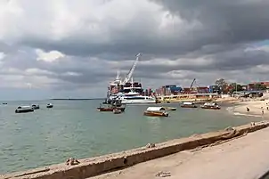A Greco-Roman text between the 1st and 3rd centuries, the Periplus of the Erythraean Sea, mentioned the island of Menuthias (Ancient Greek: Μενουθιάς), which is probably Unguja.[16] Zanzibar, like the nearby coast, was settled by Bantu-speakers at the outset of the first millennium. Archaeological finds at Fukuchani, on the north-west coast of Zanzibar, indicate a settled agricultural and fishing community from the 6th century CE at the latest. The considerable amount of daub found indicates timber buildings, and shell beads, bead grinders, and iron slag have been found at the site. There is evidence of limited engagement in long-distance trade: a small amount of imported pottery has been found, less than 1% of total pottery finds, mostly from the Gulf and dated to the 5th to 8th century. The similarity to contemporary sites such as Mkokotoni and Dar es Salaam indicates a unified group of communities that developed into the first center of coastal maritime culture. The coastal towns appear to have been engaged in Indian Ocean and inland African trade at this early period.[17] Trade rapidly increased in importance and quantity beginning in the mid-8th century and by the close of the 10th century Zanzibar was one of the central Swahili trading towns.[18]