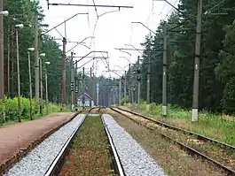 The Zemitāni–Skulte Railway is a 52 kilometres (32 mi) long,[1] 1,524 mm (5 ft) gauge railway built in the 20th century to connect Riga and Rūjiena.[2] The railway was originally part of the Mangaļi–Rūjiena Railway that opened 1937. In 1981 the line became part of the Riga–Tallinn Railway, with a travel time of only five hours. The Zemitāni–Skulte Railway got its present length in 1996 due to the financial downturn following the collapse of the Soviet Union.