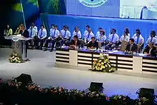 The congress was also attended by leaders of youth organizations from Kazakhstan, members of the party and the Bureau of Political Council, heads of the Administration of President of Kazakhstan, and deputies of the Parliament, representatives of government, the Assembly of Peoples of Kazakhstan, mass-media, and young guests from foreign countries.[5] The I Congress of Delegates adopted the statutes of a public association and action strategy for 2008–2011,[5] the executive secretary of the organization was selected Nurlan Uteshev.[5]